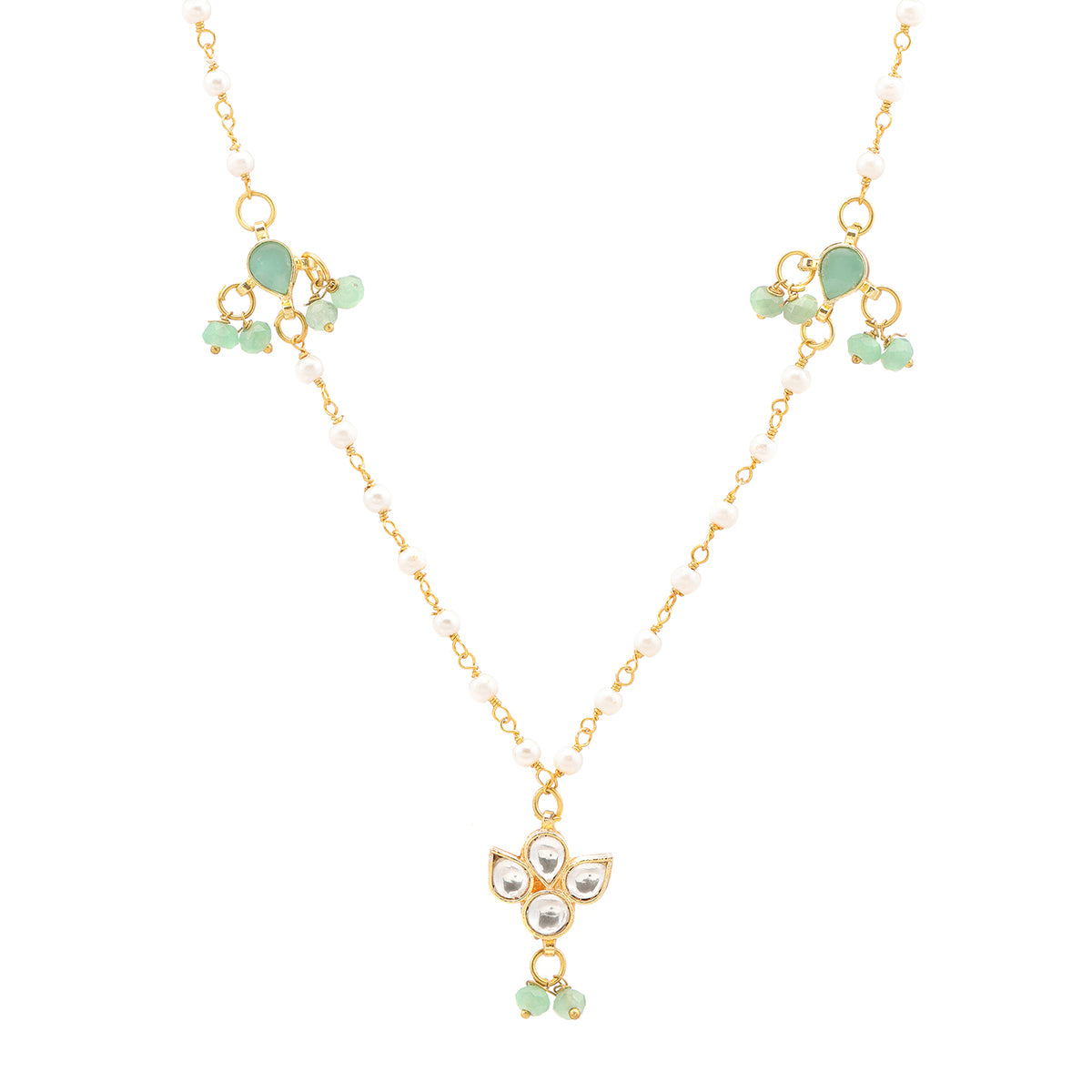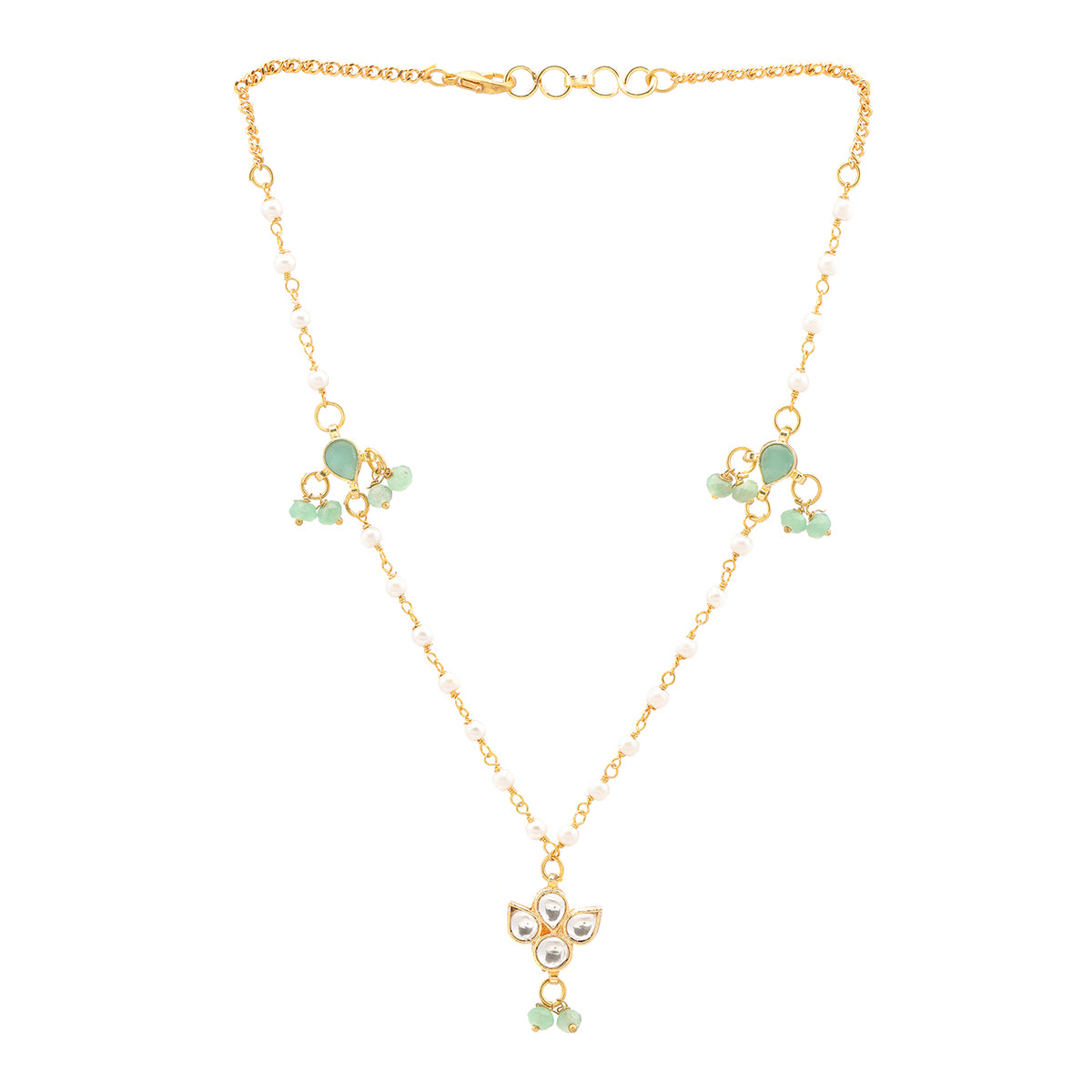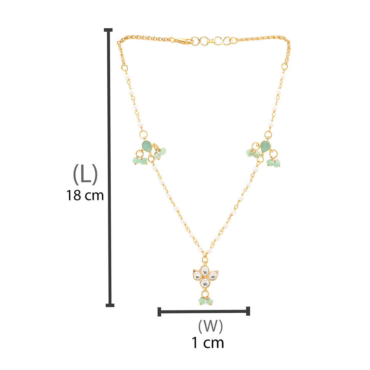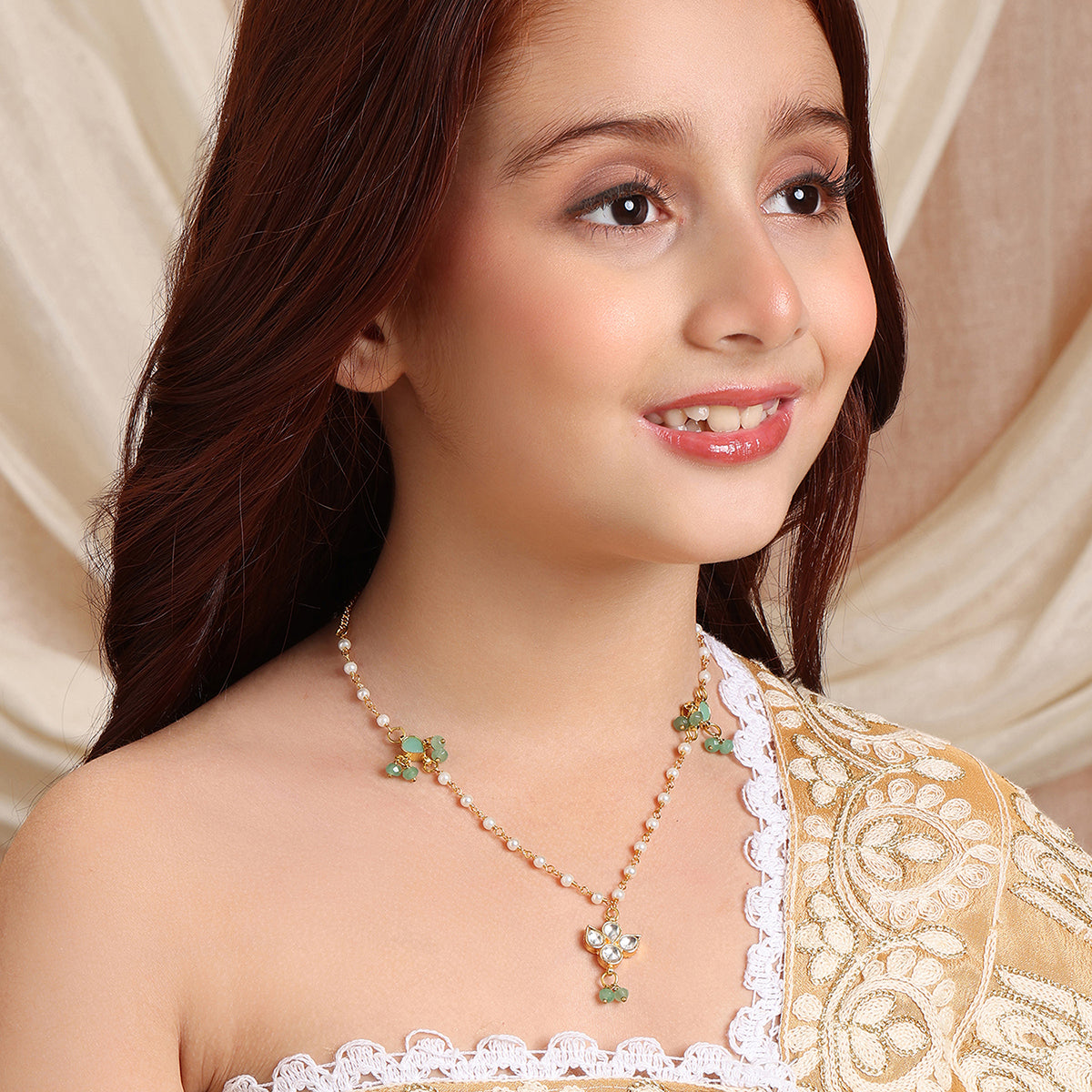 Ruby Raang Kids Kundan Mint Green Stone Necklace in Gold Plated Brass with Pearls