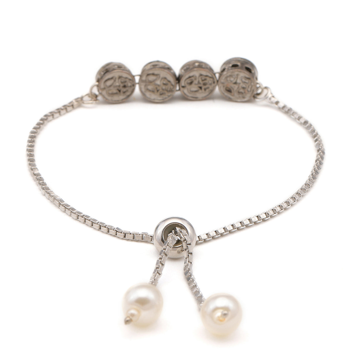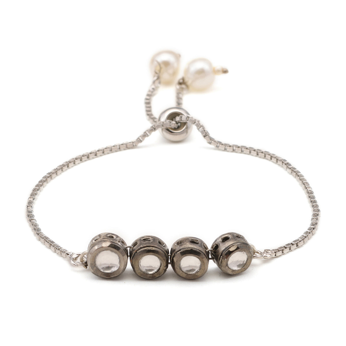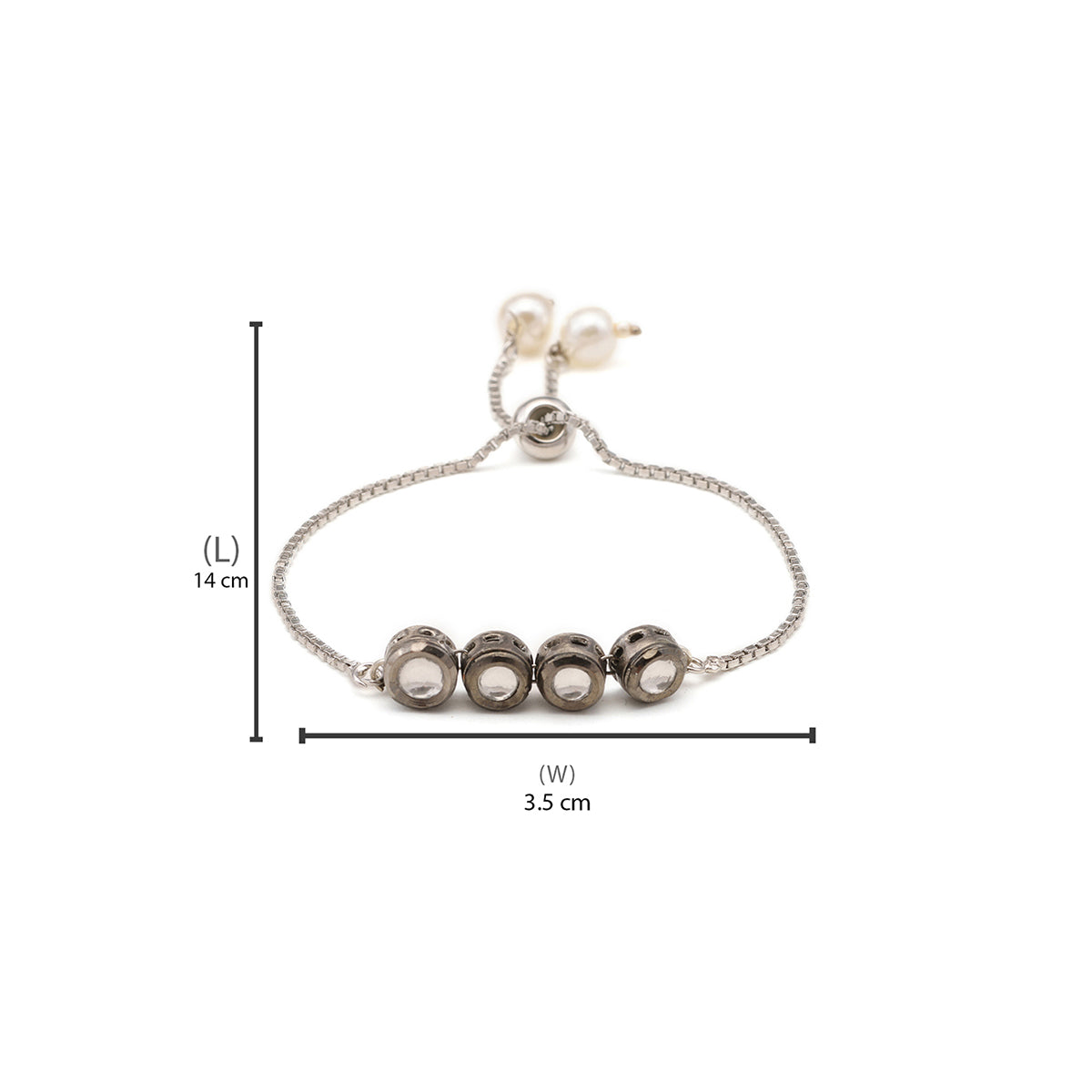 Ruby Raang Kids Round Kundan Bracelet in Silver Gold Finish Brass