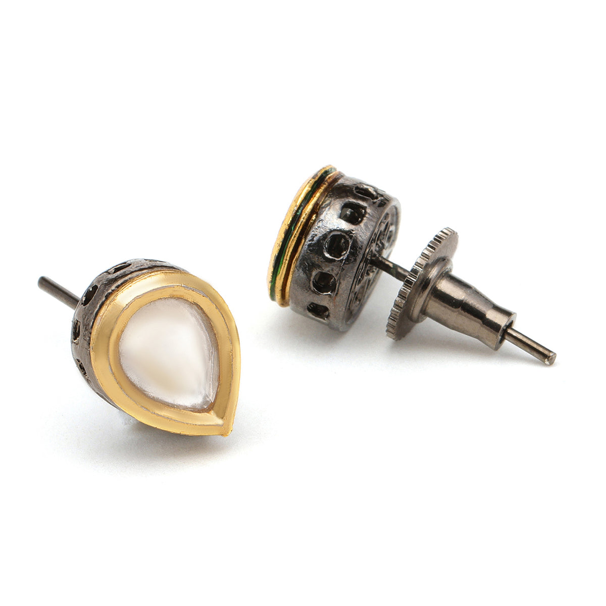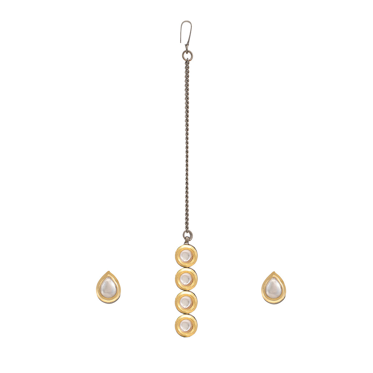 Ruby Raang Kids Round Kundan Stud Jewelry Set in Silver Plated Brass