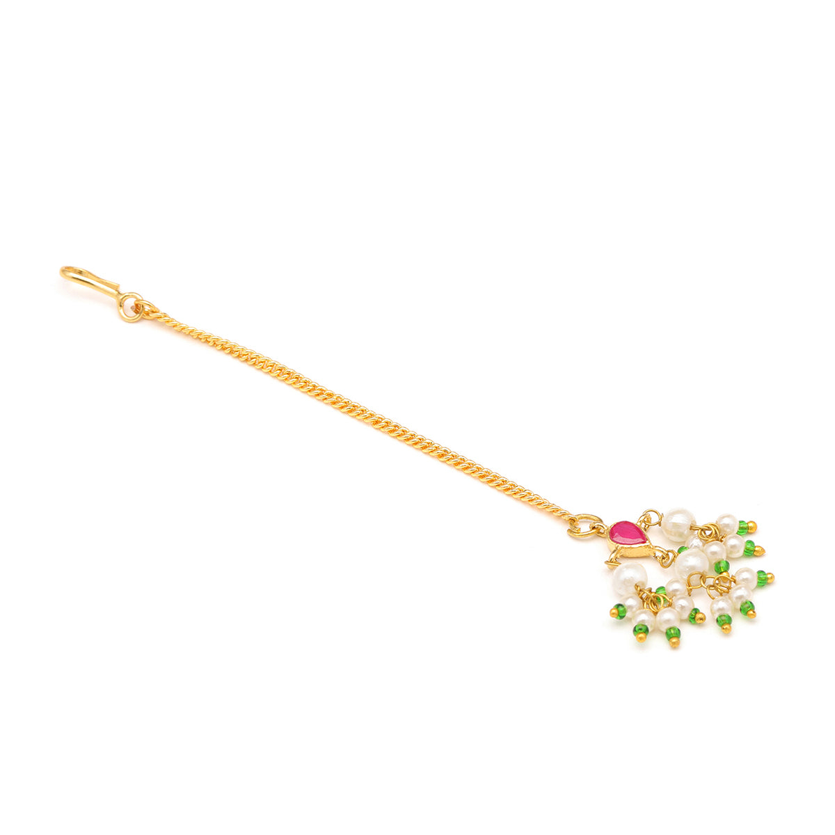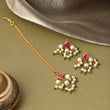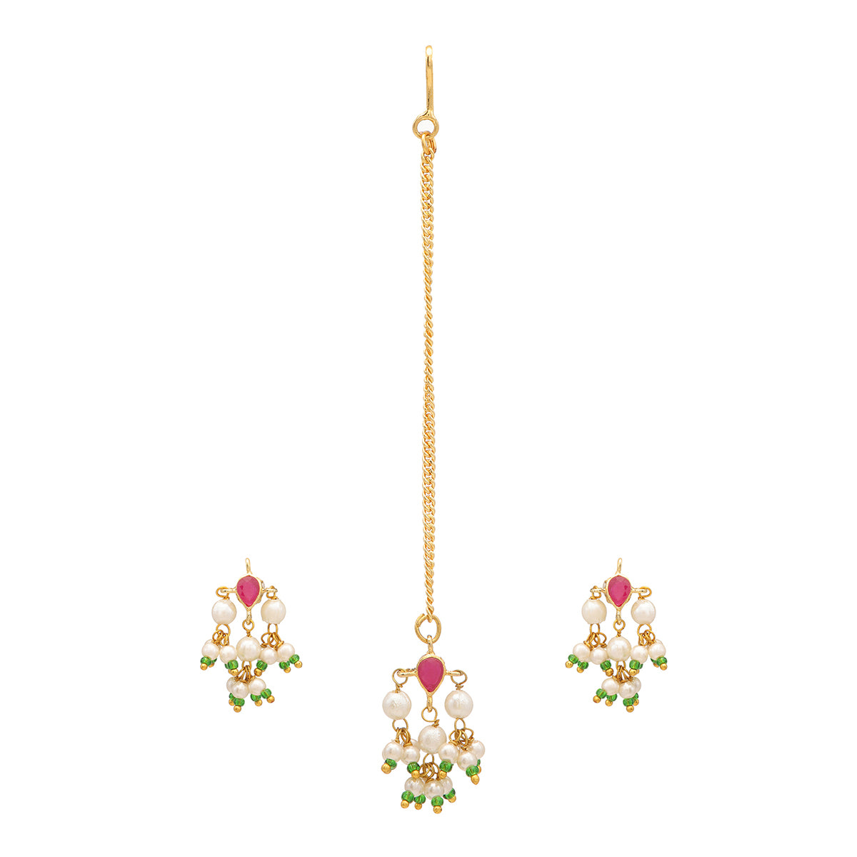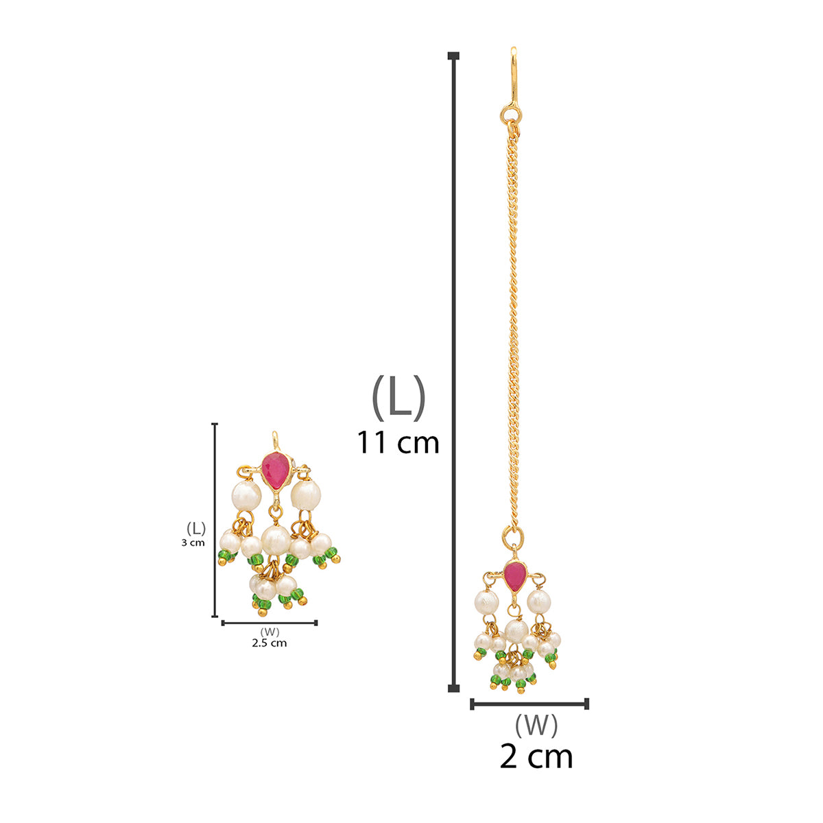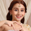 Ruby Raang Kids Tear Drop Shaped Jewelry Set with Jhallar Pearls Maroon Kundan in Gold Plated Brass