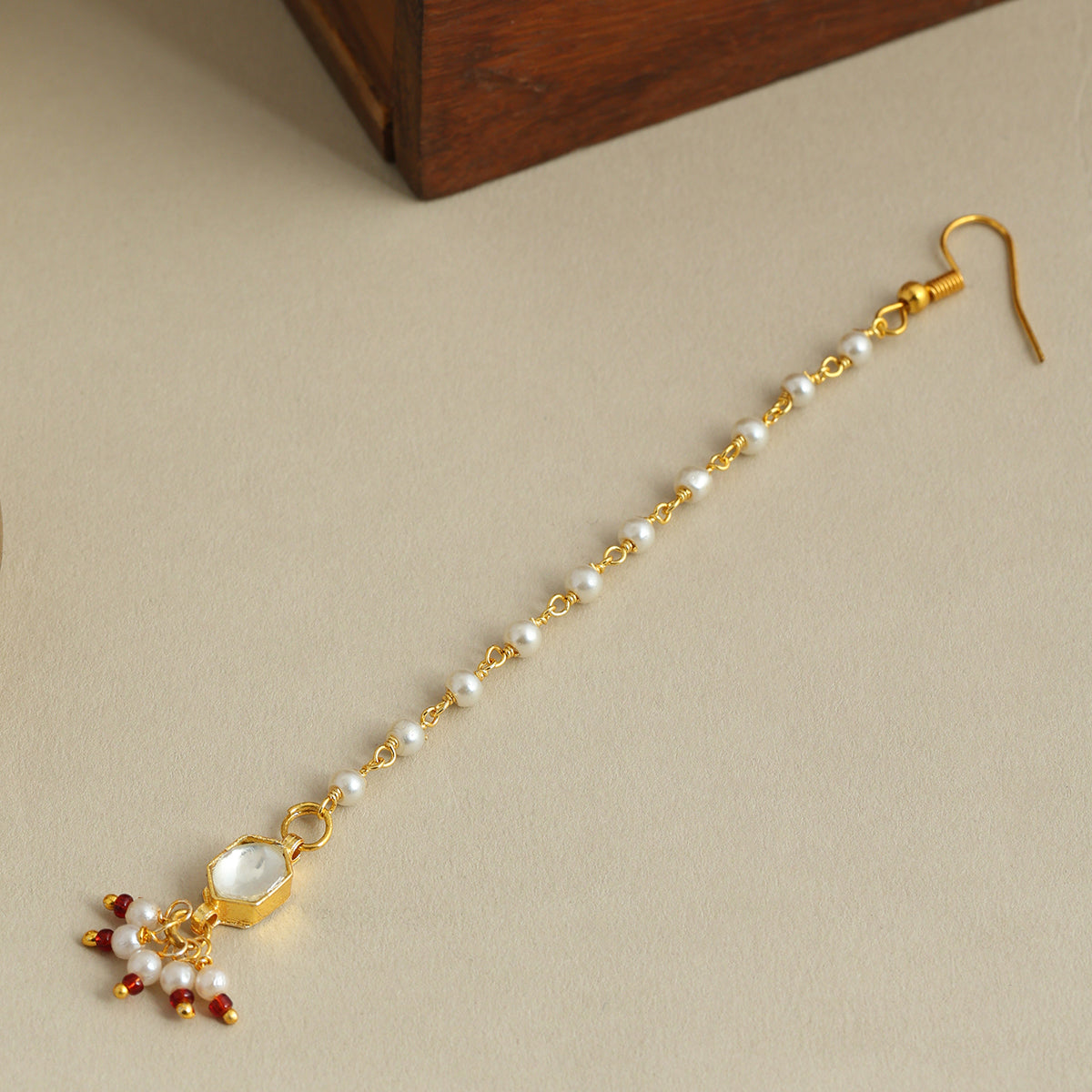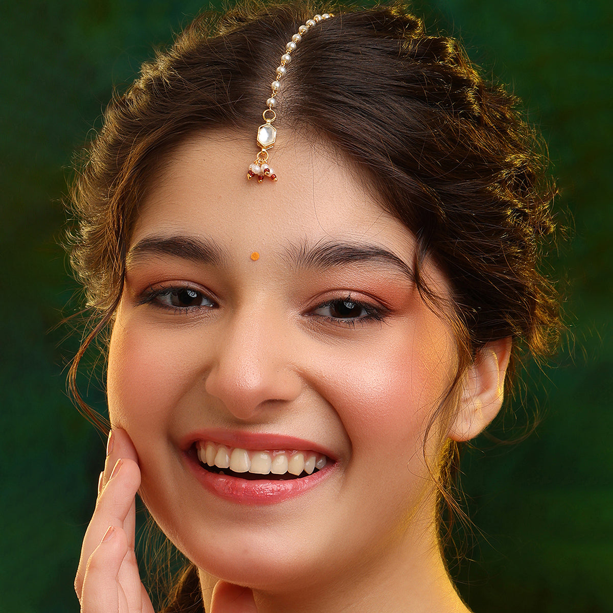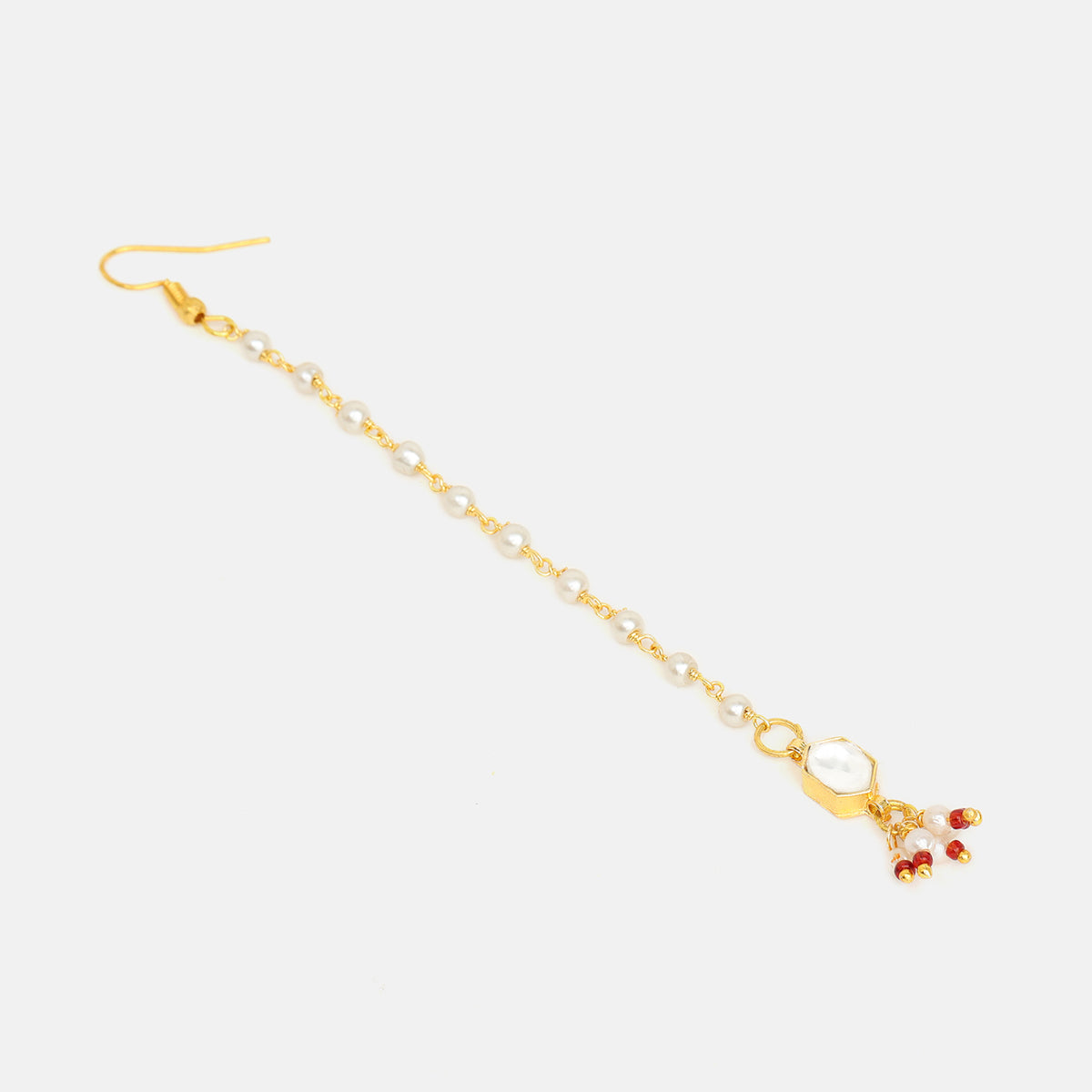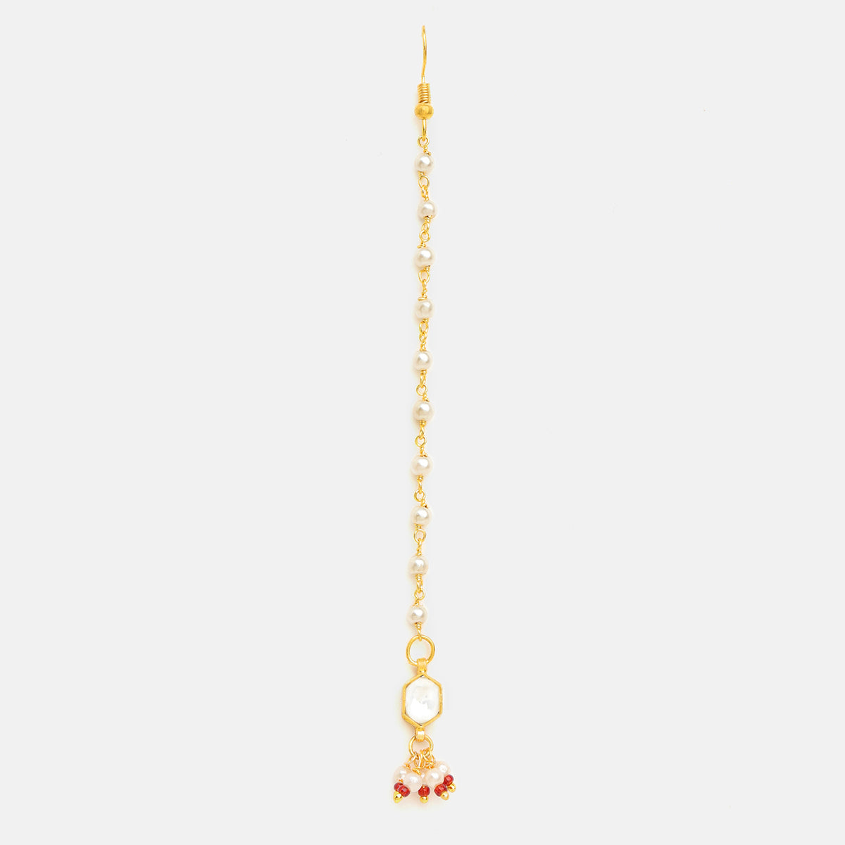 USE CODE: LOVE10Part of the Mannat Collection, this maang tikka reflects wishes whispered softly and prayers carried close to the heart. Lightweight and comfortable, it’s made for long hours of wear while still feeling effortless and natural. Hand-aligned pearl trail for a refined, symmetrical look. A minimal yet so elegant design finish.