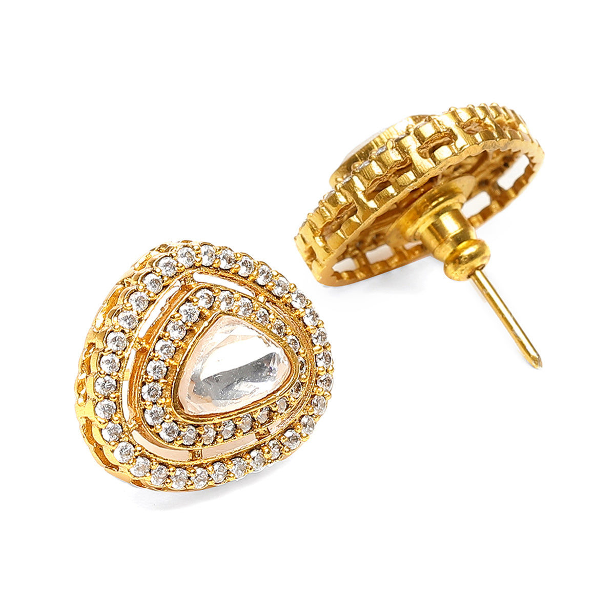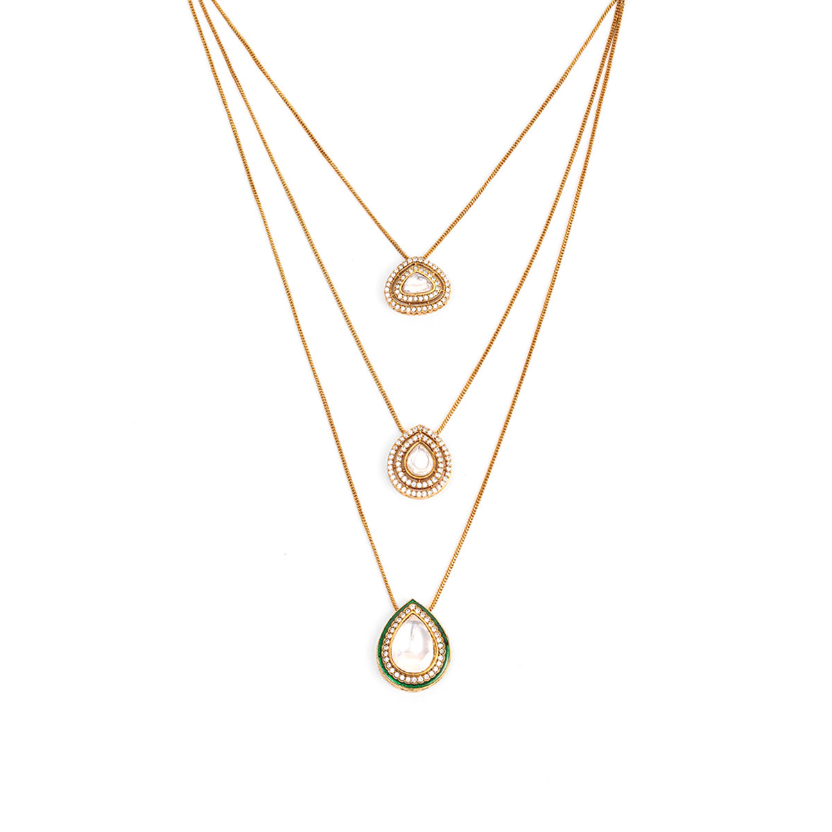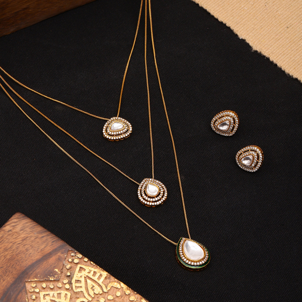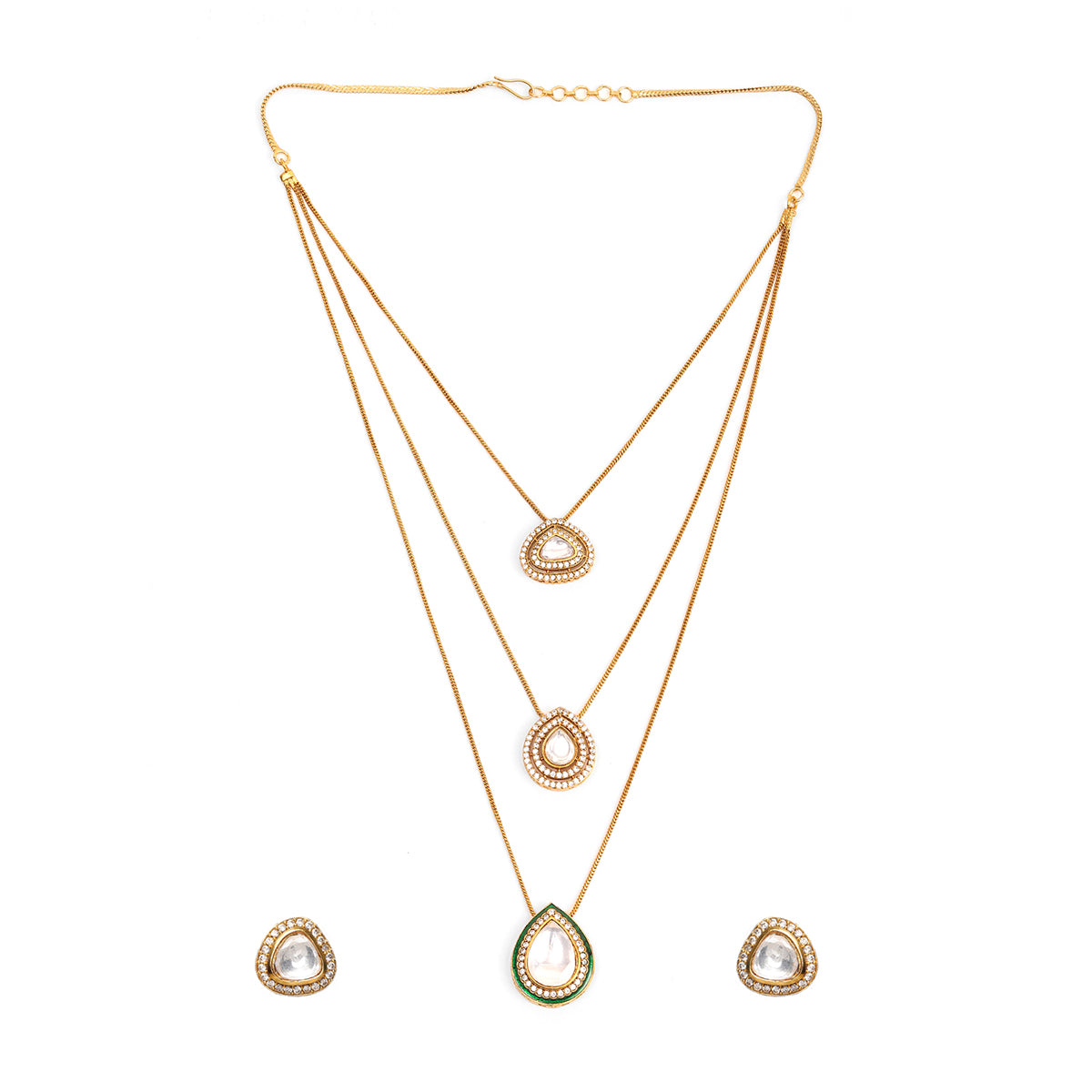 Ruby Raang Women Layered Kundan Neckpiece with Matching Studs