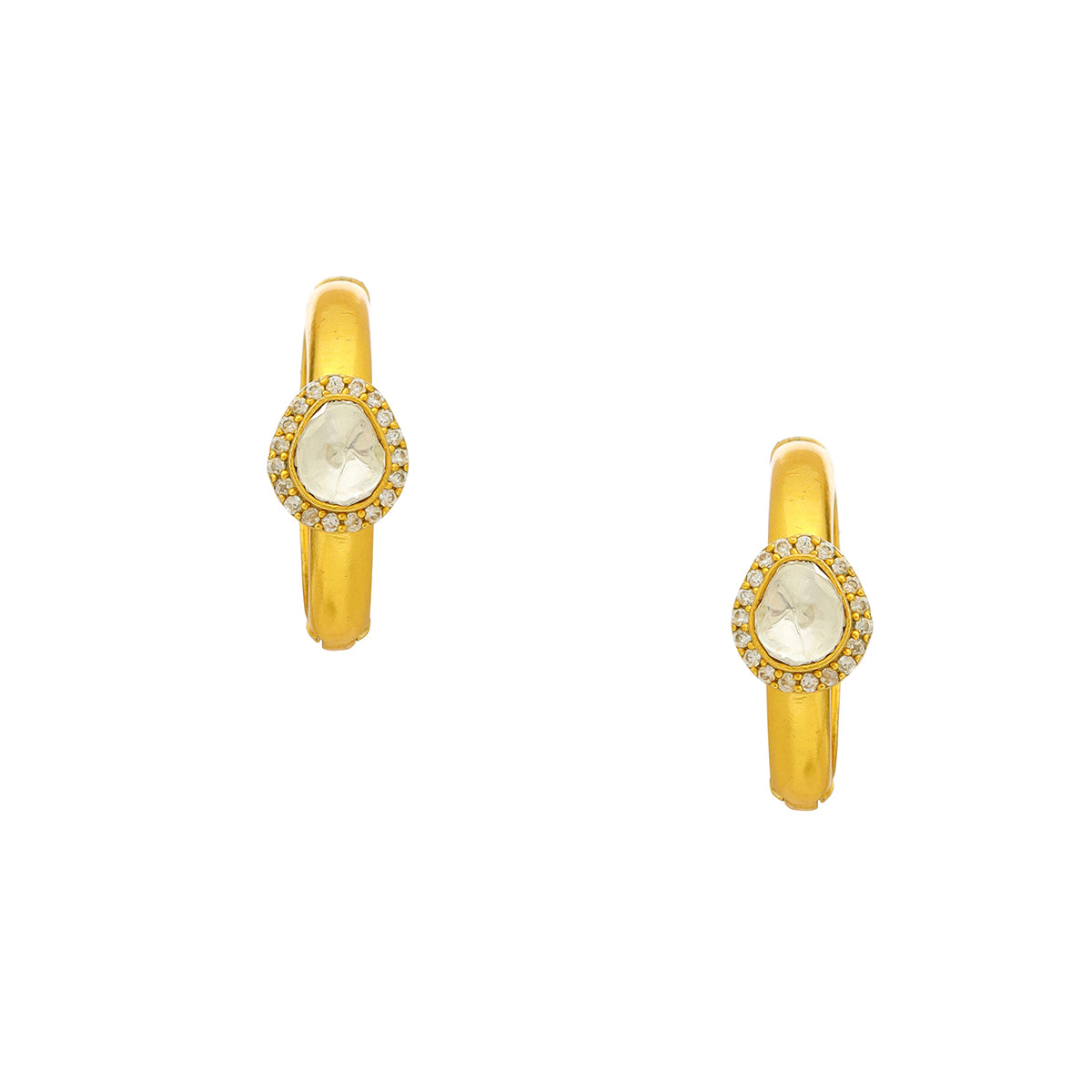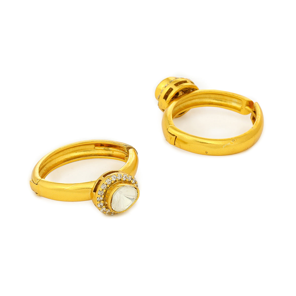 USE CODE: LOVE30Get ready to dazzle on your special day with our Hoop Kundan Earrings! These modern, gold-plated treasures are an absolute must-have for any bride or bridesmaid. The exquisite dual-stone design adds a touch of elegance and sophistication to any wedding ensemble. Crafted with precision and adorned with Kundan stones, these accessories are sure to make heads turn. Whether you're a bride looking to make a statement or a bridesmaid wanting to add some sparkle to your look, our Hoop Earrings are a perfect choice. Get ready to shine and make memories that last a lifetime!