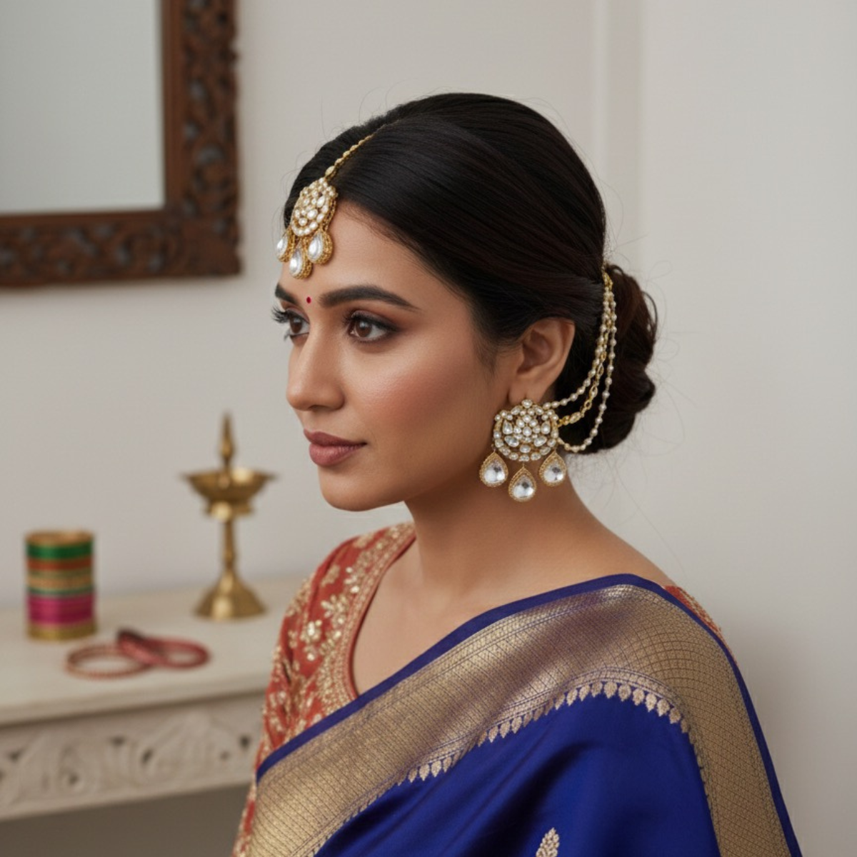 Three Layered Pearl Kanoti Kaan Chain with Kundan (set of 2)