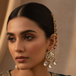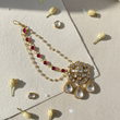 Three Pearl Layered Ear Chain in Maroon with Kundan (set of 2)