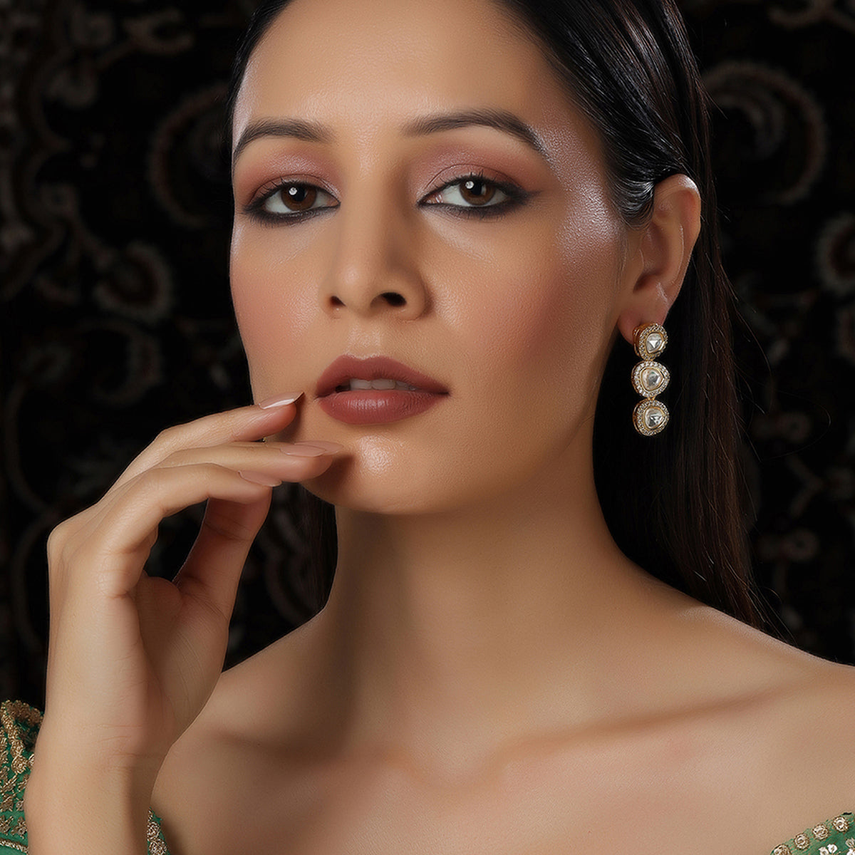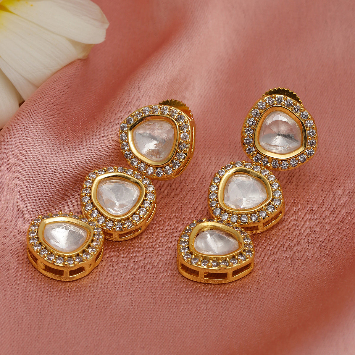 Uncut 3 Tier Kundan Dangler Earrings