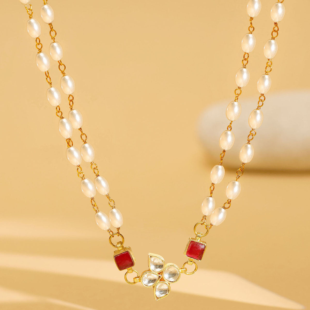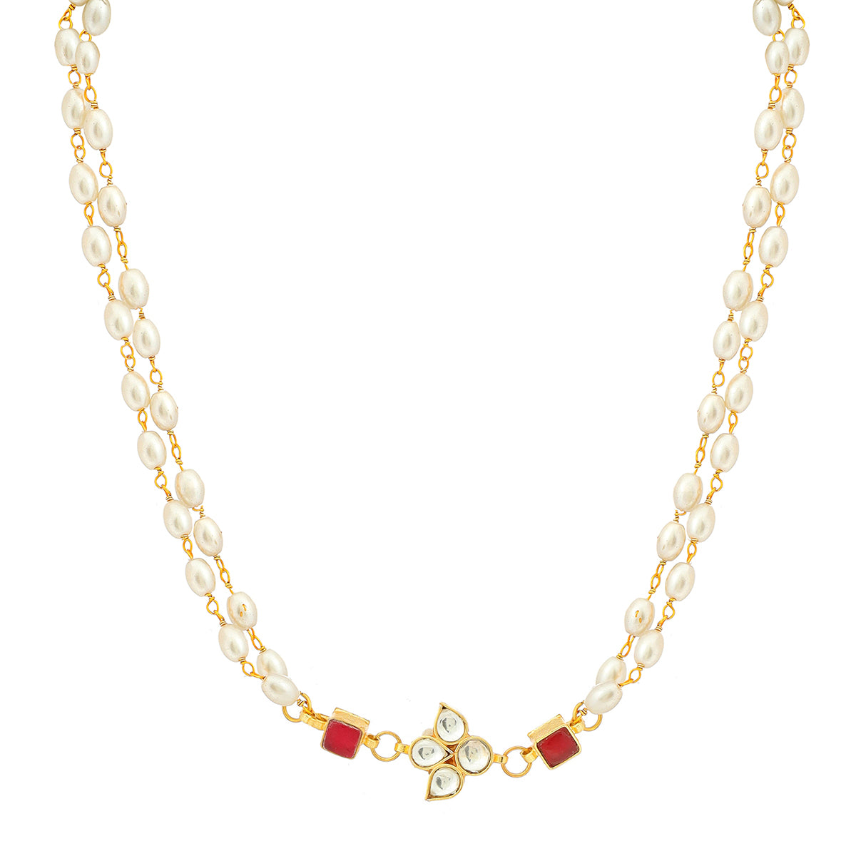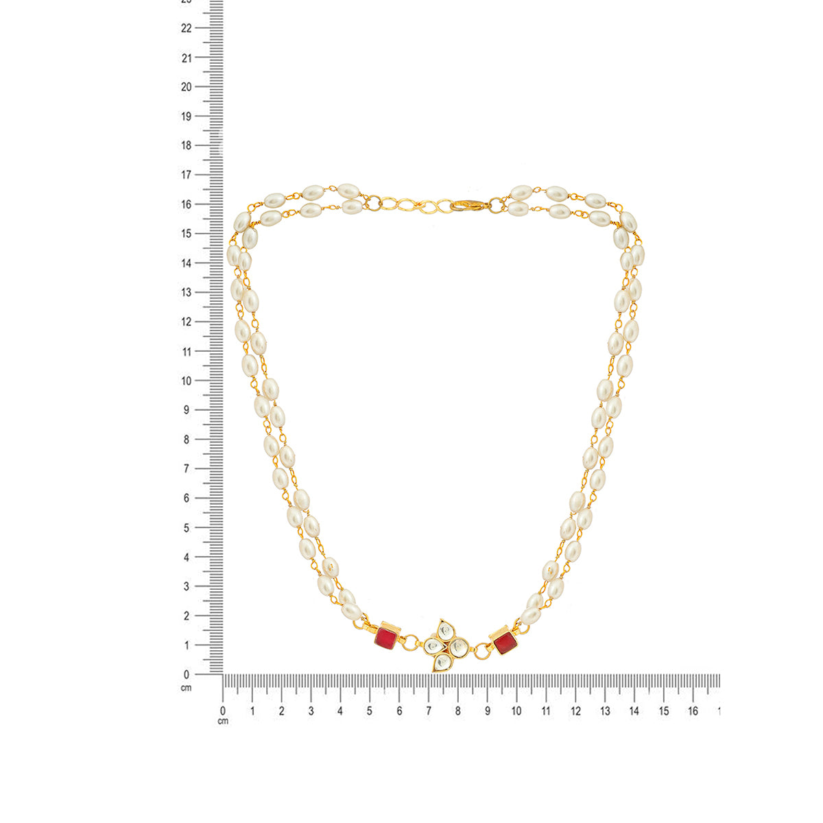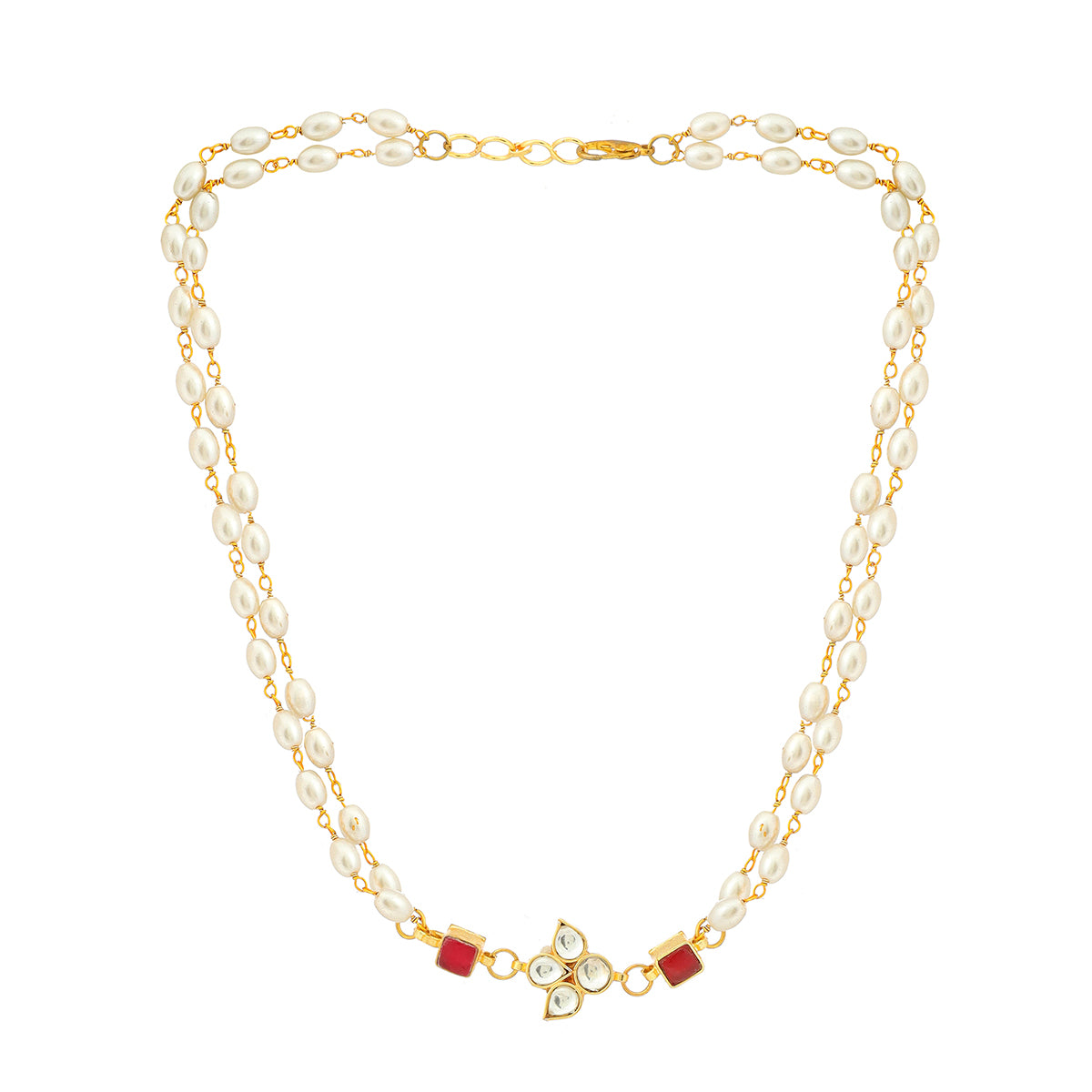 White and Red Beaded Gold Plated Flower Kundan Necklace by Ruby Raang
