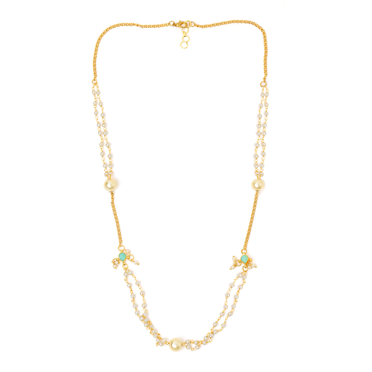 USE CODE: LOVE30Ruby Raang’s white beaded gold-plated Kundan necklace is a graceful fusion of traditional elegance and conscious craftsmanship. Handcrafted by marginalized women artisans, this exquisite piece features delicate white beads paired with intricately set Kundan stones, all finished in a radiant gold-plated setting. The necklace reflects timeless charm while being sustainably made through eco-friendly practices. Perfect for weddings, festive occasions, or elegant gatherings, it’s more than just jewelry—it’s a statement of empowerment, heritage, and mindful luxury.