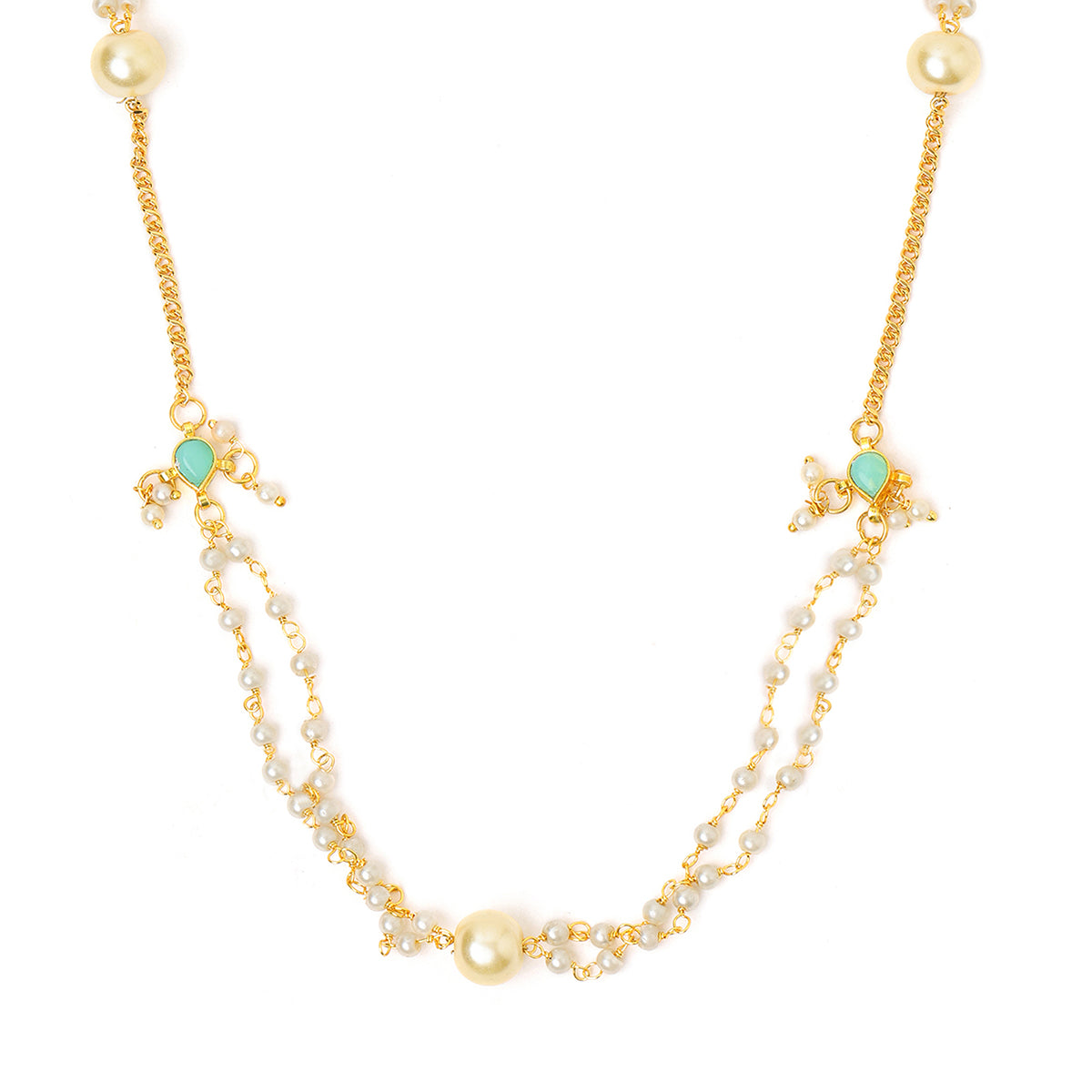 Style this necklace with soft pastel sarees or embroidered suits. Opt for an elegant bun or open waves to highlight the beaded detailing and golden glow.