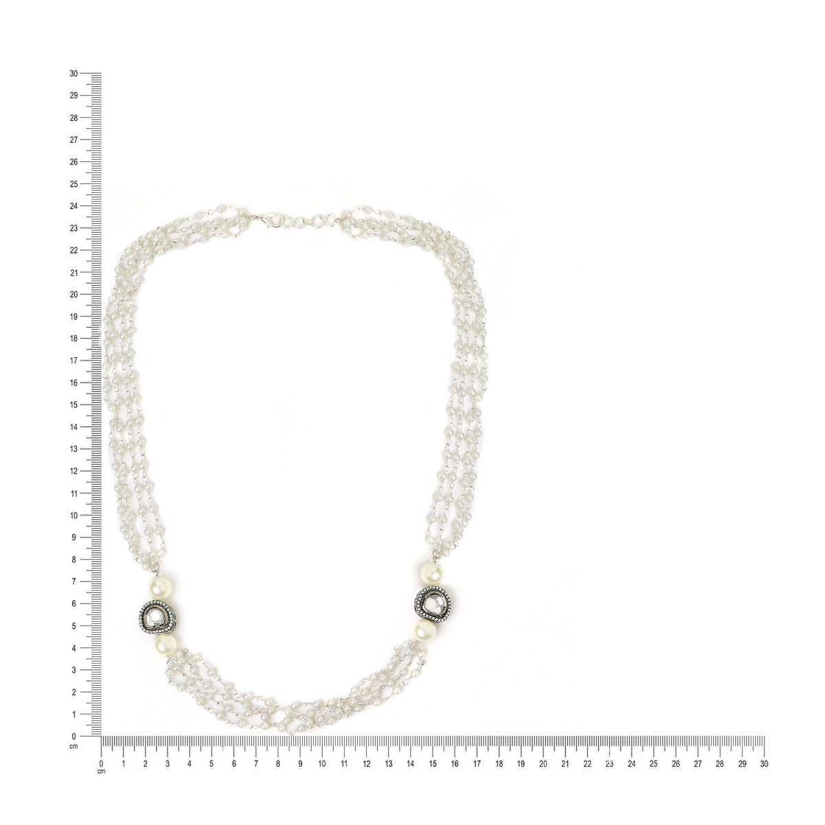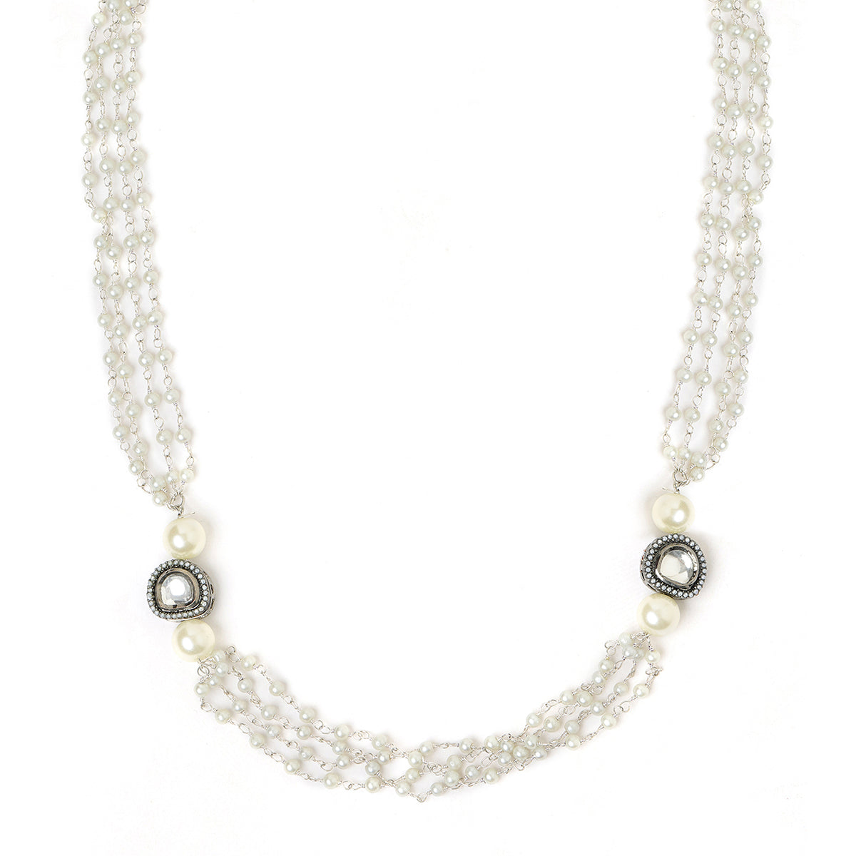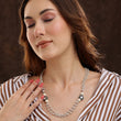 Style this necklace with cool-toned or pastel outfits like powder blue, lavender, or pearl white. Pair with matching earrings and a low chignon to let the soft rhodium shine stand out gracefully.