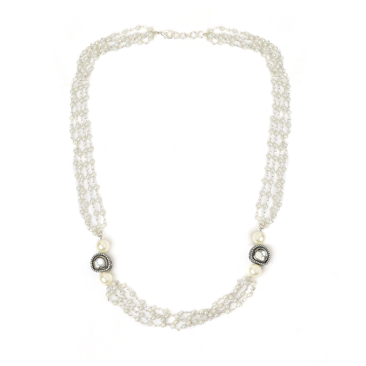 White Rhodium Plated Kundan Neckalce by Ruby Raang